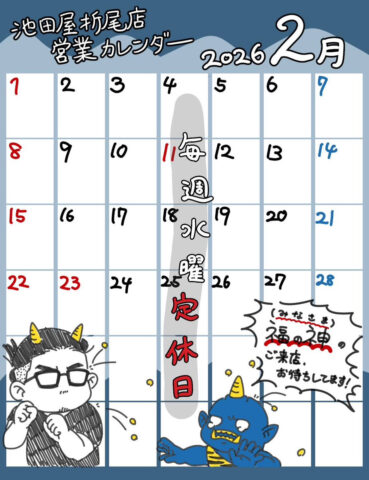 1月の営業カレンダーが間に合わず、2月になってしまいました。ご無沙汰しております。
